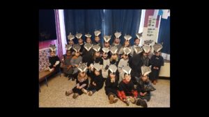 En classe, nous avons découvert l’album de Michel Van Zeveren : « Et pourquoi ? ». Ce livre revisite le conte du Petit Chaperon Rouge de manière amusante. Ensuite, les Petits bouts ont confectionné leur masque de loup.