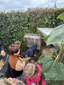 Nos poules sont, elles aussi, revenues de vacances. Blanchette et Brunette ont retrouvé leur poulailler de la petite école. Nous les avons installées confortablement. Nous nous sommes bien documenté pour pouvoir en prendre soin. Et pour le plus grand bonheur des Petits Bouts, le comptage des œufs à recommencer. Les grands calculent sans problème jusque 6 avec les boîtes à œufs.